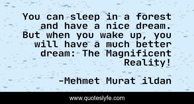 This page presents the quote "You can sleep in a forest and have a nice dream. But when you wake up, you will have a much better dream: The Magnificent Reality!". Author of this quote is Mehmet Murat ildan. .