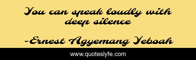 This page presents the quote "You can speak loudly with deep silence". Author of this quote is Ernest Agyemang Yeboah. This quote is about words-and-silence, annoying-people, deep-silence, silence,.