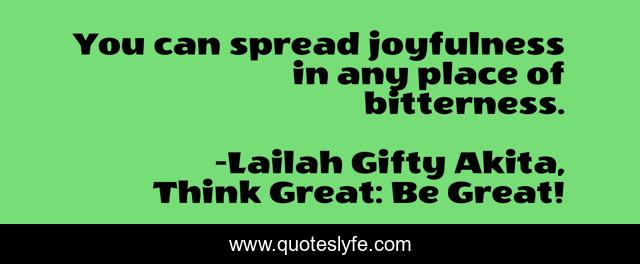 "Lailah Gifty Akita, Think Great: Be Great! Quotes." Quoteslyfe.com, 2025. Sun. 07 Dec. 2025. <https://www.quoteslyfe.com/quote/You-can-spread-joyfulness-in-any-place-78394>.