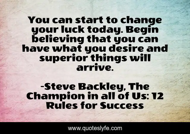 "Steve Backley, The Champion in all of Us: 12 Rules for Success Quotes." Quoteslyfe.com, 2025. Sun. 07 Dec. 2025. <https://www.quoteslyfe.com/quote/You-can-start-to-change-your-luck-32338>.