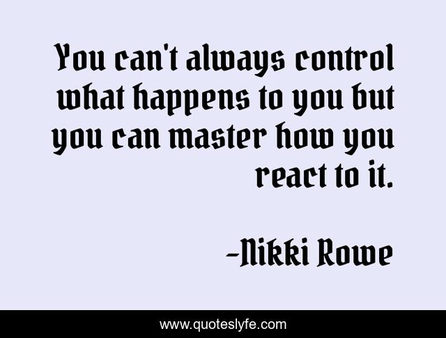 This page presents the quote "You can't always control what happens to you but you can master how you react to it.". Author of this quote is Nikki Rowe. This quote is about life, nikki-rowe, author, quotes-and-sayings, quote-of-the-day, writer, wise-words, wisdom, leadership,.