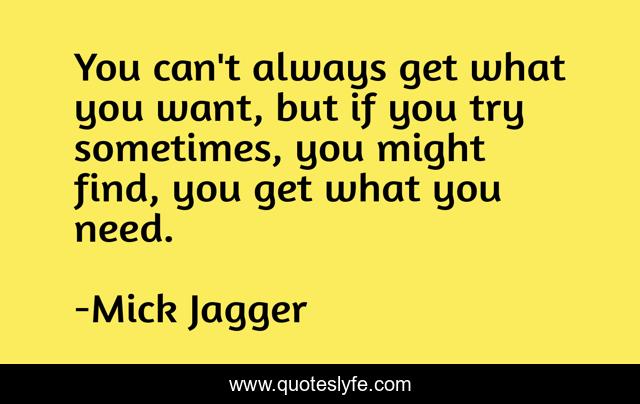 This page presents the quote "You can't always get what you want, but if you try sometimes, you might find, you get what you need.". Author of this quote is Mick Jagger. This quote is about desire, need,.
