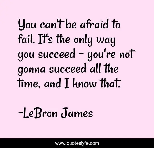 This page presents the quote "You can't be afraid to fail. It's the only way you succeed - you're not gonna succeed all the time, and I know that.". Author of this quote is LeBron James. .