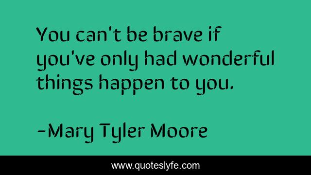 This page presents the quote "You can't be brave if you've only had wonderful things happen to you.". Author of this quote is Mary Tyler Moore. This quote is about life, experience, courage, adversity, bravery, happiness,.