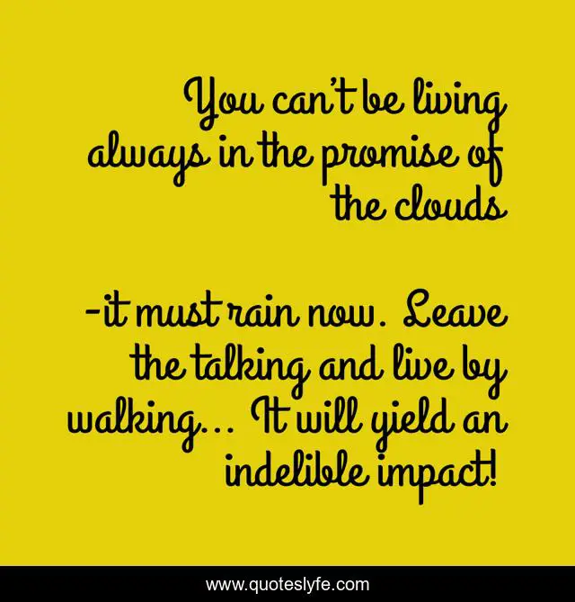"it must rain now. Leave the talking and live by walking… It will yield an indelible impact! Quotes." Quoteslyfe.com, 2025. Fri. 05 Dec. 2025. <https://www.quoteslyfe.com/quote/You-can-t-be-living-always-in-105565>.