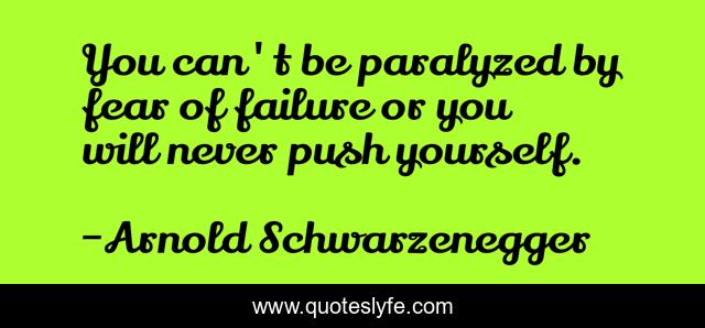 This page presents the quote "You can't be paralyzed by fear of failure or you will never push yourself.". Author of this quote is Arnold Schwarzenegger. This quote is about failure, arnold-schwarzenegger, mgg,.