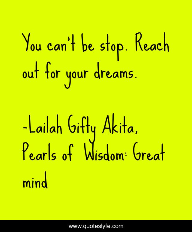 "Lailah Gifty Akita, Pearls of Wisdom: Great mind Quotes." Quoteslyfe.com, 2025. Sun. 07 Dec. 2025. <https://www.quoteslyfe.com/quote/You-can-t-be-stop-Reach-out-84258>.