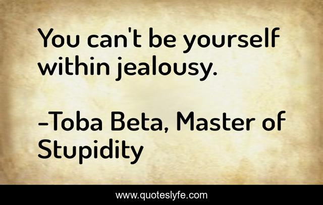 This page presents the quote "You can't be yourself within jealousy.". Author of this quote is Toba Beta, Master of Stupidity. This quote is about be-yourself, jealousy,.
