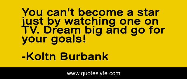 This page presents the quote "You can't become a star just by watching one on TV. Dream big and go for your goals!". Author of this quote is Koltn Burbank. This quote is about quote, teenage-author, inspirational-thought, author,.