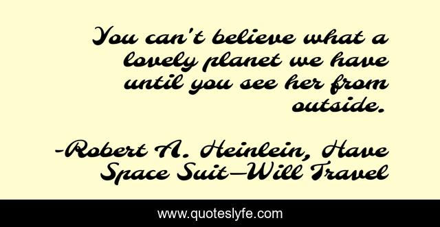 "Robert A. Heinlein, Have Space Suit—Will Travel Quotes." Quoteslyfe.com, 2025. Mon. 08 Dec. 2025. <https://www.quoteslyfe.com/quote/You-can-t-believe-what-a-lovely-180238>.