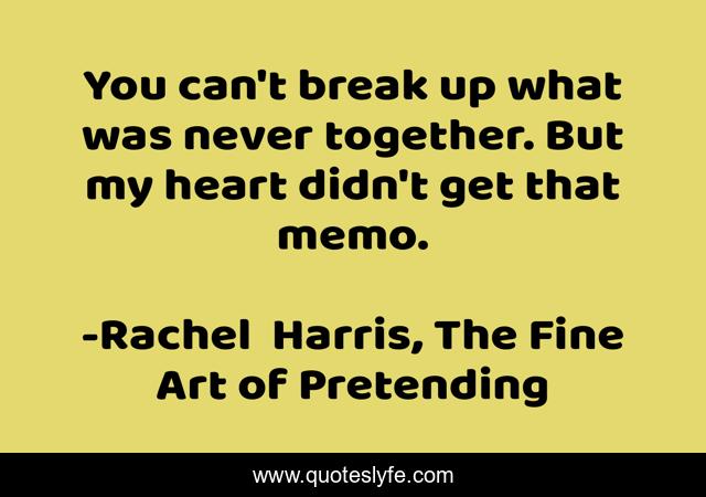 This page presents the quote "You can't break up what was never together. But my heart didn't get that memo.". Author of this quote is Rachel Harris, The Fine Art of Pretending. .