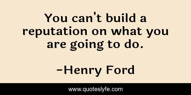This page presents the quote "You can't build a reputation on what you are going to do.". Author of this quote is Henry Ford. This quote is about action, motivation, reputation,.