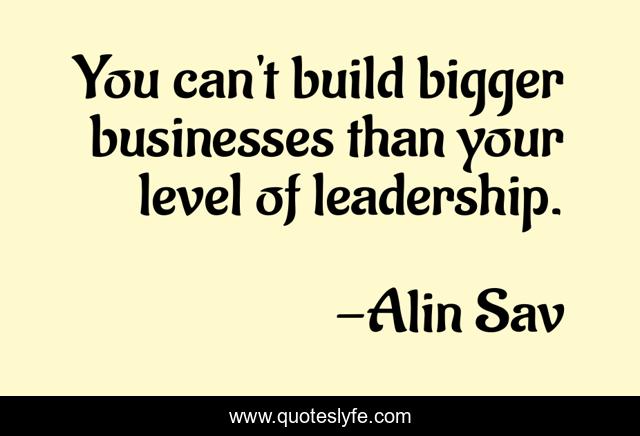 This page presents the quote "You can't build bigger businesses than your level of leadership.". Author of this quote is Alin Sav. .