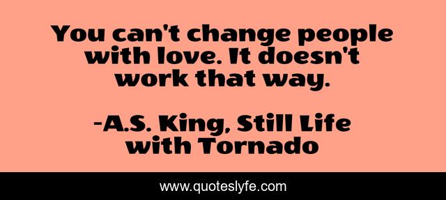 "A.S. King, Still Life with Tornado Quotes." Quoteslyfe.com, 2025. Sat. 06 Dec. 2025. <https://www.quoteslyfe.com/quote/You-can-t-change-people-with-love-13543>.