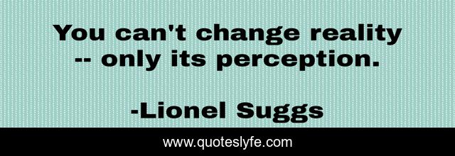 This page presents the quote "You can't change reality -- only its perception.". Author of this quote is Lionel Suggs. This quote is about perception, reality,.
