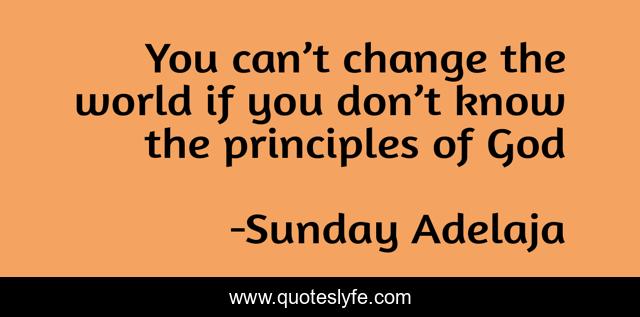 This page presents the quote "You can’t change the world if you don’t know the principles of God". Author of this quote is Sunday Adelaja. This quote is about change-agent, life, blessing, finance, heavenly-principles, work, kingdom-principles, job, purpose,.