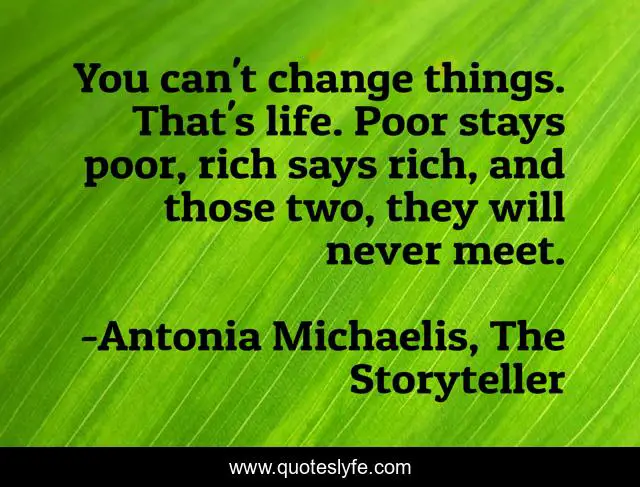 This page presents the quote "You can't change things. That's life. Poor stays poor, rich says rich, and those two, they will never meet.". Author of this quote is Antonia Michaelis, The Storyteller. .