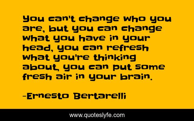 This page presents the quote "You can't change who you are, but you can change what you have in your head, you can refresh what you're thinking about, you can put some fresh air in your brain.". Author of this quote is Ernesto Bertarelli. This quote is about thinking, brain,.