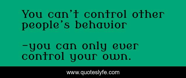 This page presents the quote "You can’t control other people’s behavior". Author of this quote is you can only ever control your own.. .