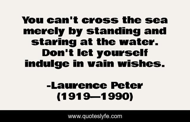This page presents the quote "You can't cross the sea merely by standing and staring at the water. Don't let yourself indulge in vain wishes.". Author of this quote is Laurence Peter (1919—1990). This quote is about water, wish, vain, cross, sea,.