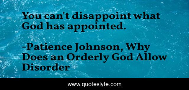 "Patience Johnson, Why Does an Orderly God Allow Disorder Quotes." Quoteslyfe.com, 2025. Sat. 06 Dec. 2025. <https://www.quoteslyfe.com/quote/You-can-t-disappoint-what-God-has-20669>.