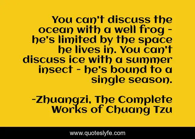 "Zhuangzi, The Complete Works of Chuang Tzu Quotes." Quoteslyfe.com, 2025. Sun. 14 Dec. 2025. <https://www.quoteslyfe.com/quote/You-can-t-discuss-the-ocean-with-166632>.