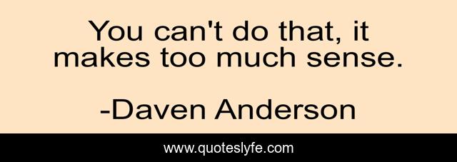 This page presents the quote "You can't do that, it makes too much sense.". Author of this quote is Daven Anderson. This quote is about philosophy-of-life, insight, humor,.