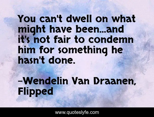 This page presents the quote "You can't dwell on what might have been...and it's not fair to condemn him for something he hasn't done.". Author of this quote is Wendelin Van Draanen, Flipped. This quote is about enthusiasm, prejudice, grandpa-chet, inspirational, wisdom,.