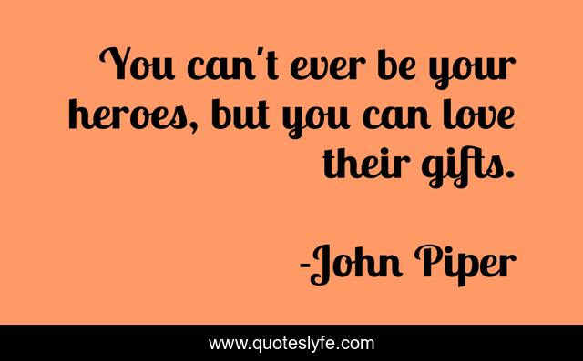 This page presents the quote "You can't ever be your heroes, but you can love their gifts.". Author of this quote is John Piper. This quote is about hero-worship, admiration, envy,.