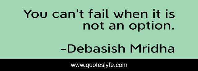 This page presents the quote "You can't fail when it is not an option.". Author of this quote is Debasish Mridha. This quote is about philosophy, debasish-mridha, debasish-mridha-m-d, quotes, inspirational, fail, enthusiasm, can-t-fail, options,.