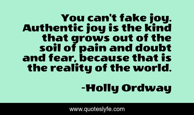 This page presents the quote "You can't fake joy. Authentic joy is the kind that grows out of the soil of pain and doubt and fear, because that is the reality of the world.". Author of this quote is Holly Ordway. This quote is about joy, happiness,.