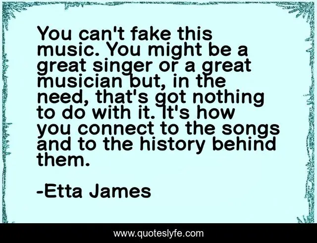 "Etta James Quotes." Quoteslyfe.com, 2025. Mon. 08 Dec. 2025. <https://www.quoteslyfe.com/quote/You-can-t-fake-this-music-You-296053>.