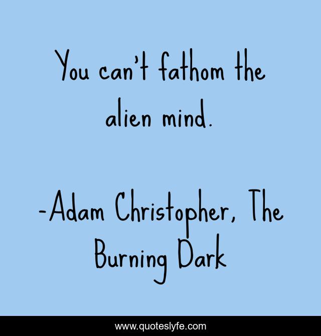 This page presents the quote "You can’t fathom the alien mind.". Author of this quote is Adam Christopher, The Burning Dark. This quote is about alien, mind,.