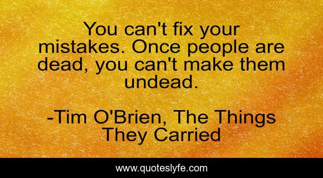 This page presents the quote "You can't fix your mistakes. Once people are dead, you can't make them undead.". Author of this quote is Tim O'Brien, The Things They Carried. This quote is about mistakes, the-things-they-carried, tim-o-brien,.