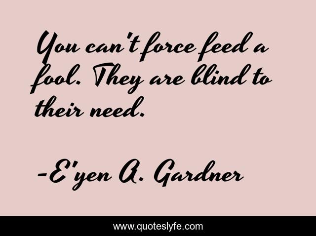 This page presents the quote "You can't force feed a fool. They are blind to their need.". Author of this quote is E'yen A. Gardner. This quote is about life-experience, life-lessons,.