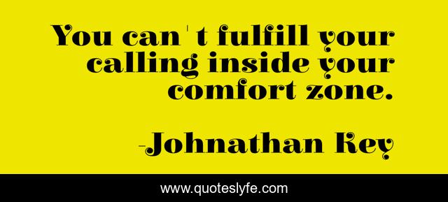 This page presents the quote "You can't fulfill your calling inside your comfort zone.". Author of this quote is Johnathan Key. This quote is about career, calling, religion, job, call, inspirational, comfort-zone, enthusiasm,.