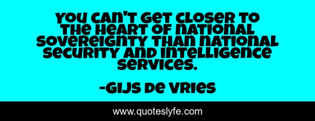 This page presents the quote "You can't get closer to the heart of national sovereignty than national security and intelligence services.". Author of this quote is Gijs de Vries. This quote is about heart, security,.