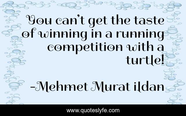 This page presents the quote "You can’t get the taste of winning in a running competition with a turtle!". Author of this quote is Mehmet Murat ildan. .