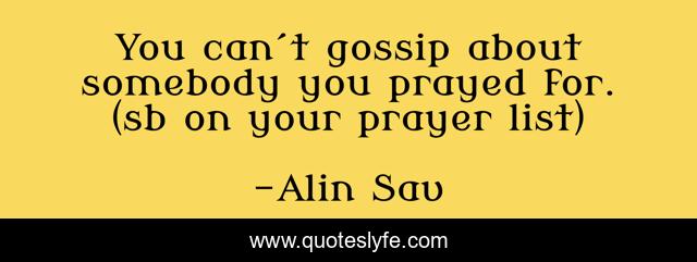 This page presents the quote "You can´t gossip about somebody you prayed for. (sb on your prayer list)". Author of this quote is Alin Sav. .
