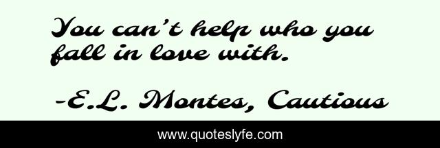 This page presents the quote "You can’t help who you fall in love with.". Author of this quote is E.L. Montes, Cautious. This quote is about falling-in-love, experience, choose-love,.