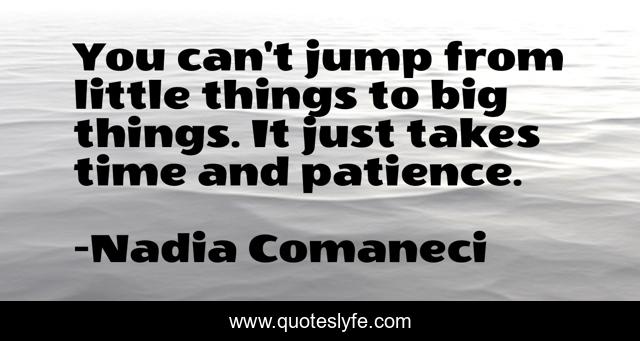 This page presents the quote "You can't jump from little things to big things. It just takes time and patience.". Author of this quote is Nadia Comaneci. This quote is about little things, time,.
