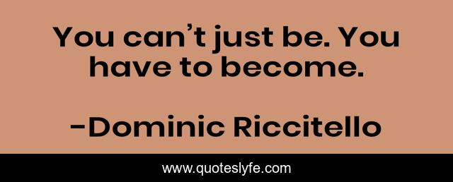 This page presents the quote "You can’t just be. You have to become.". Author of this quote is Dominic Riccitello. This quote is about maturing, adulthood, quote, becoming, yourself, maturity, mature, growing, become,.