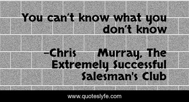 "Chris Murray, The Extremely Successful Salesman's Club Quotes." Quoteslyfe.com, 2025. Sat. 06 Dec. 2025. <https://www.quoteslyfe.com/quote/You-can-t-know-what-you-don-109761>.