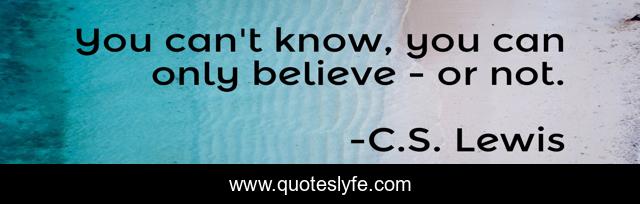 This page presents the quote "You can't know, you can only believe - or not.". Author of this quote is C.S. Lewis. This quote is about faith, knowledge,.