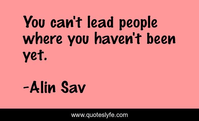 This page presents the quote "You can't lead people where you haven't been yet.". Author of this quote is Alin Sav. .