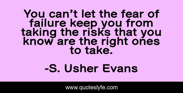 This page presents the quote "You can’t let the fear of failure keep you from taking the risks that you know are the right ones to take.". Author of this quote is S. Usher Evans. This quote is about failure, fear, self-help,.