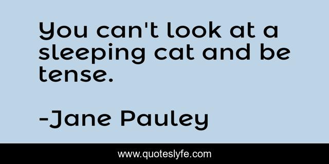 This page presents the quote "You can't look at a sleeping cat and be tense.". Author of this quote is Jane Pauley. .
