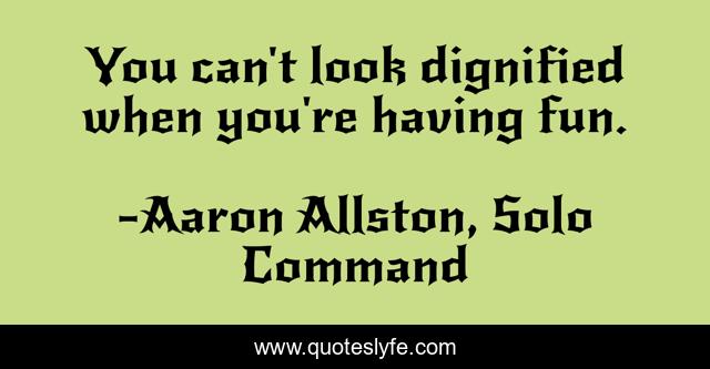 This page presents the quote "You can't look dignified when you're having fun.". Author of this quote is Aaron Allston, Solo Command. This quote is about enthusiasm, inspirational,.