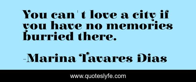 This page presents the quote "You can't love a city if you have no memories burried there.". Author of this quote is Marina Tavares Dias. This quote is about memories, cities, love, places, affection,.