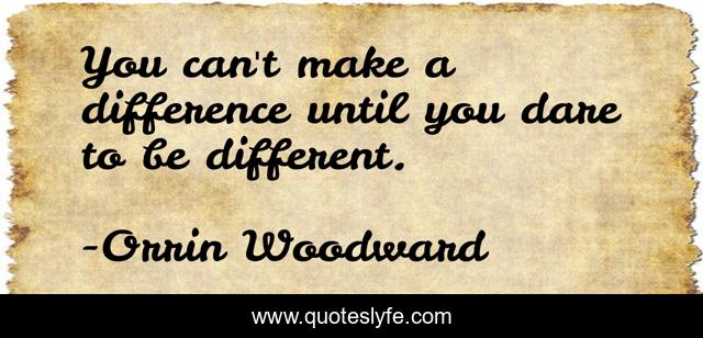 This page presents the quote "You can't make a difference until you dare to be different.". Author of this quote is Orrin Woodward. This quote is about courage, legacy, make-a-difference, purpose,.